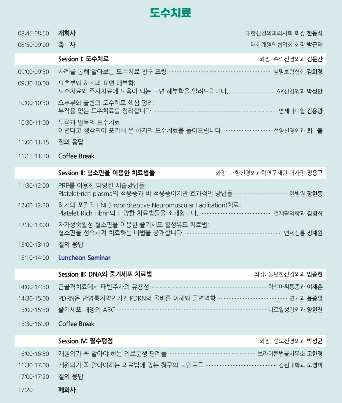 ※필수평점 필요하신 분들은 도수 등록해 주시면 됩니다 2025 제40차 대한신경외과의사회 추계 학술대회 일시 ▶ 2025년 10월 26일(일) 8:40-17:10 장소 ▶ 세종대학교 광개토관 지하2층 컨벤션홀 평점 ▶ 의협 6점 예정 ( 필수 1점 받으실 경우, 일반 평점 5점 제공) 사전 등록비▶ 도수치료 5만원 >> 전공의 1만원 전공의 선생님들께는 학술대회 참석시, 1만원 상당의 커피쿠폰 지급해 드립니다. 2개 강의 중 하나만 선택해서 등록. (선택하신 곳에만 이수증 발급) *신경외과가 아닌, 타과 전문의도 접수 가능하시며 이수증도 동일하게 드립니다.* ♧ 입금처 : 기업 388-128681-04-021 대한신경외과의사회 ♧ 운영사무국 문 의 : 전화 010-6207-4277 / 이메일 med2002@nate.com ![]() |
